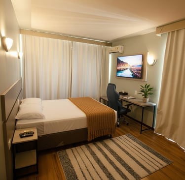 Conforto e praticidade para sua estadia executiva e de longa duração no Hotel Santoni.